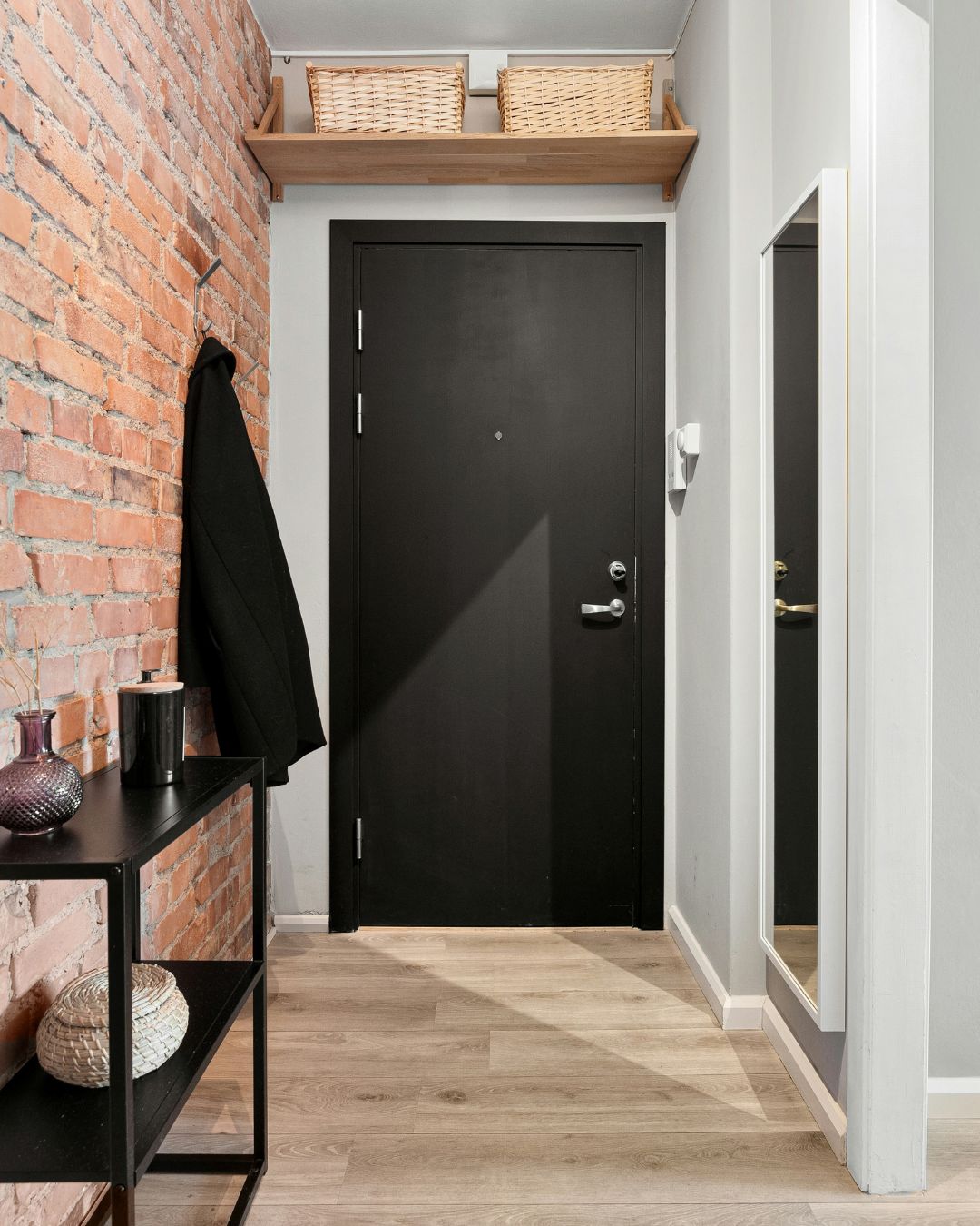 Wer zum derben Charakter eine etwas elegantere, zurückhaltendere Tür bevorzugt (etwa bei dunklen Möbeln oder Metallakzenten), findet mit der JELD-WEN Urban Uni Trend Raven CPL-Tür aus der Optima-Kollektion eine passende Lösung. Das ebenso minimalistische Design wirkt in Schwarz besonders dezent und lässt sich hervorragend mit Vintage-Accessoires und Ziegelmauern kombinieren.
